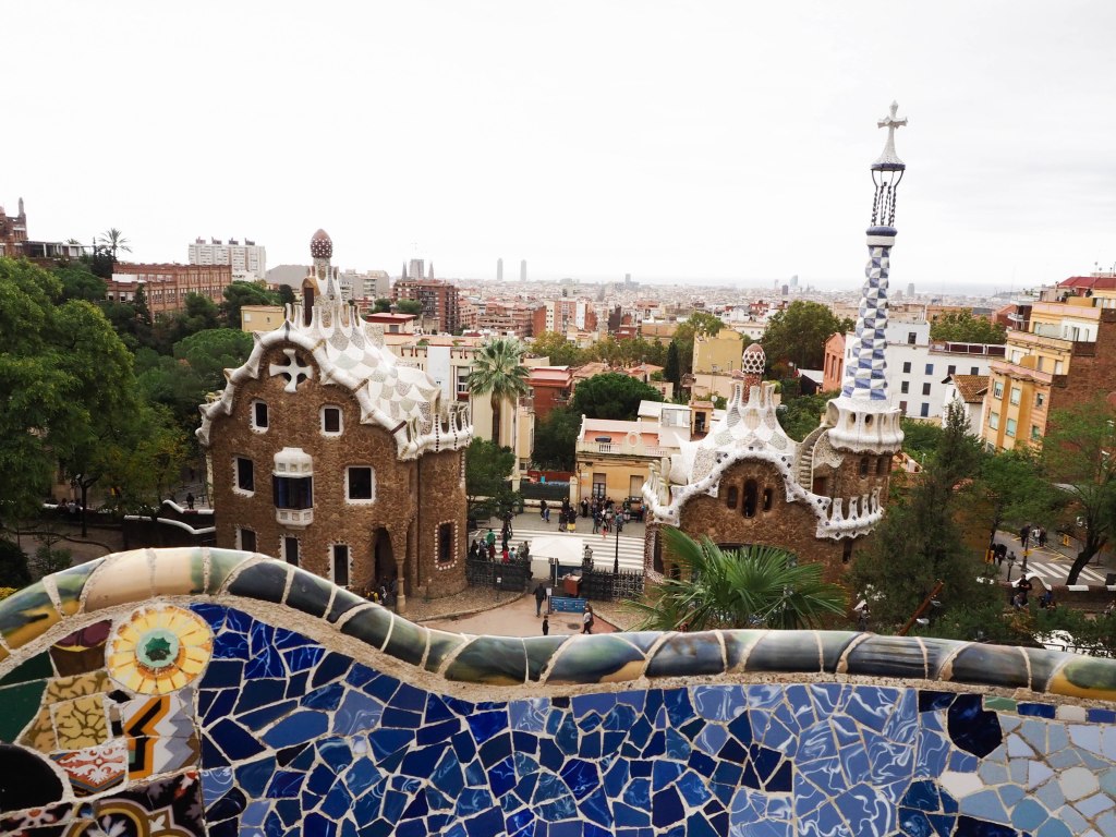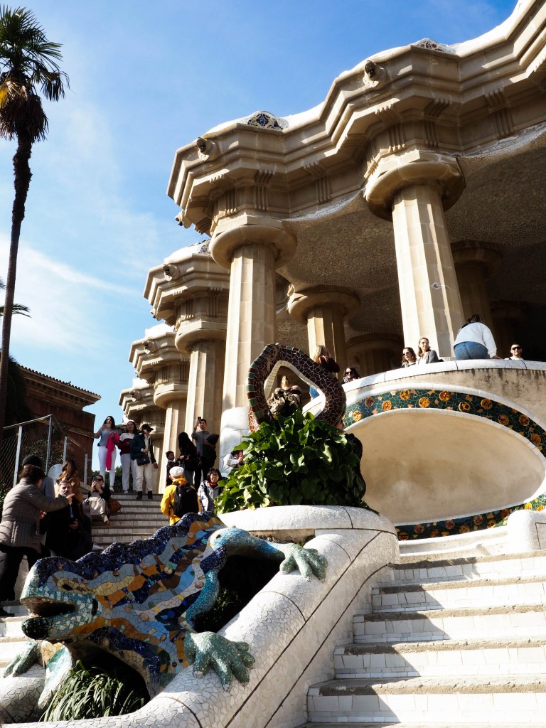 Park Guell miejsce znane każdemu dzięki bajecznie kolorowej ławce i lukrowanym domkom. W części ogólnodostępnej znajdują się głównie ścieżki skąpane w roślinności, kamienne kolumny oraz La Casa Trias, którą można podziwiać jedynie z zewnątrz. Za 5,5€ możemy zwiedzić znajdujące się na terenie parku Casa Museu Gaudí jest to muzeum powstałe w miejscu, w którym przez pewien czas mieszkał i pracował Antoni Gaudí. Wstęp do najbardziej rozpoznawalnej części parku kosztuje 10€, bilet kupuje się na określoną godzinę (wejścia co 30 min). Osobiście byłam w środku dwukrotnie, ze względu na to, że za pierwszym razem na terenie parku odbywały się prace renowacyjne, na rzecz których zamknięto połowę górnej części. Park naprawdę zachwyca, przepełniony jest elementami mozaikowymi, pełnymi soczystych kolorów, jest to coś co każdy powinien zobaczyć chociaż raz. Rzeczą, która nie ukrywam zaskoczyła mnie najbardziej jest wielkość tej części parku, patrząc na zdjęcia wyobrażałam sobie ją jako znacznie większą, tymczasem wolnym spacerkiem, zatrzymując się na zdjęcia (większość osób pragnie zrobić sobie zdjęcie na centralnie położonej ławce, dlatego należy poczekać na swoją kolej i jak najlepiej wykorzystać 1/2 minuty) bez problemu możemy zwiedzić tę część w około 20 min, nie wliczam w to pobytu w sklepie z pamiątkami lub zwiedzania muzeum zlokalizowanego w jednym z lukrowych domków. Jeśli macie możliwość polecam kupić bilet online, kupując bilety na miejscu po pierwsze zwykle trzeba poczekać 30 min w kolejce do kasy, aby kupić bilet, który jest przeważnie na wejście za około 1h, dlatego wygodniej jest zakupić bilety wcześniej.