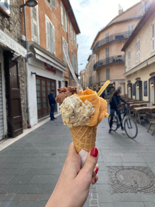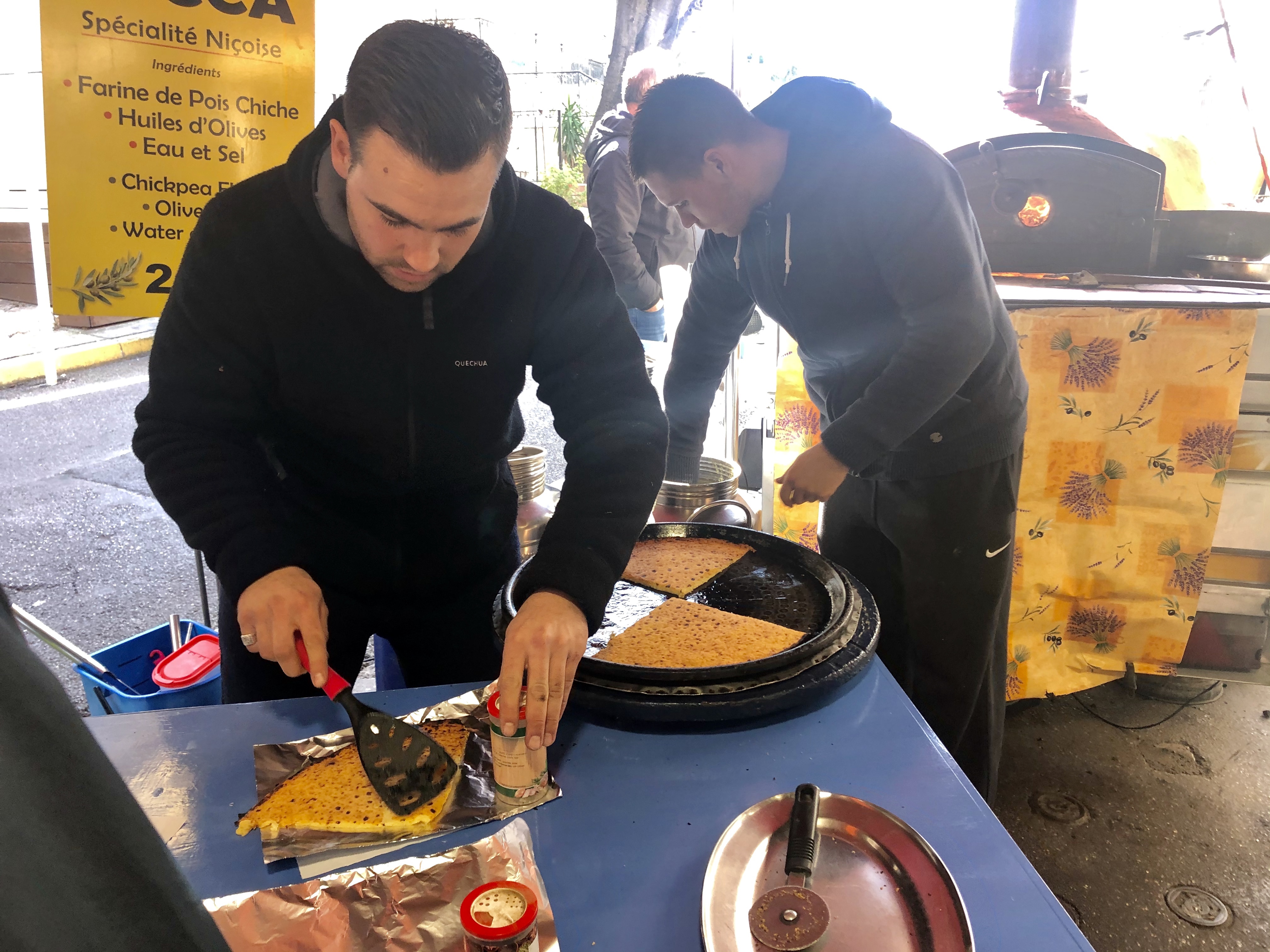 Na początek odwiedziłyśmy Marché provençal jest to market, na świeżym powietrzu gdzie można nabyć przyprawy, miody, nabiał, owoce i warzywa. Na miejsu można również zakupić za 2 €, naleśniki z ciecierzycy podawane z pieprzem i solą lub inna wybraną przez nas przyprawą.